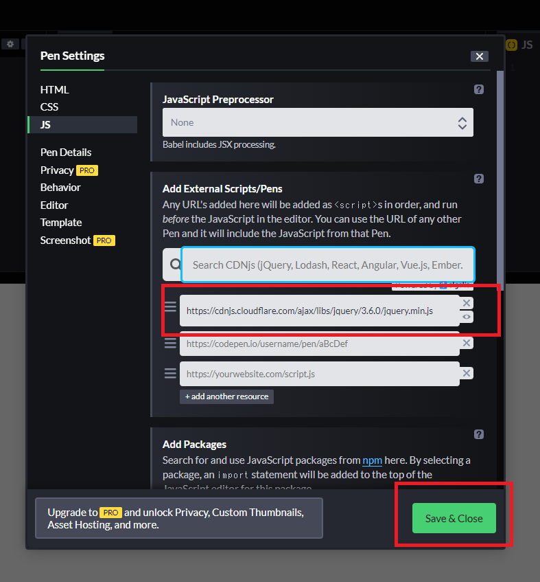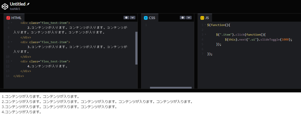 設定は以上です。CodePenでjQueryが使るようになりました!