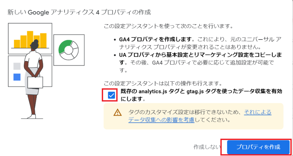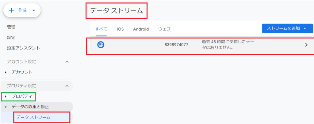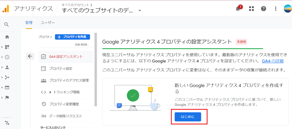 GA4を利用するには。「プロパティ」という箱を作成する必要がありますので、