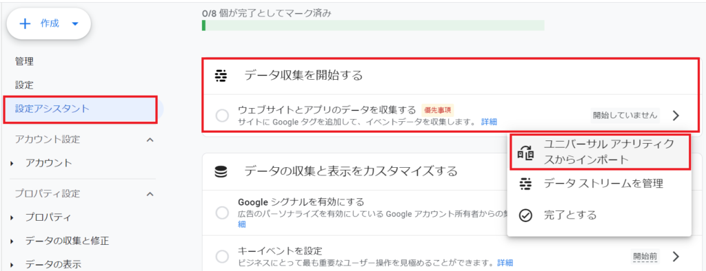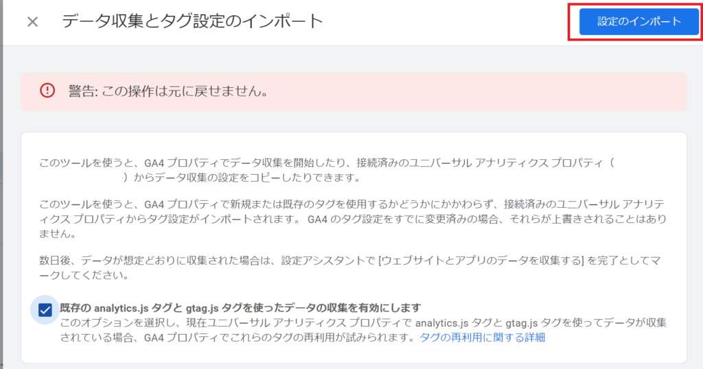 今までGAで解析していたUA(ユニバーサルアナリティクス)というVersionからインポートします。