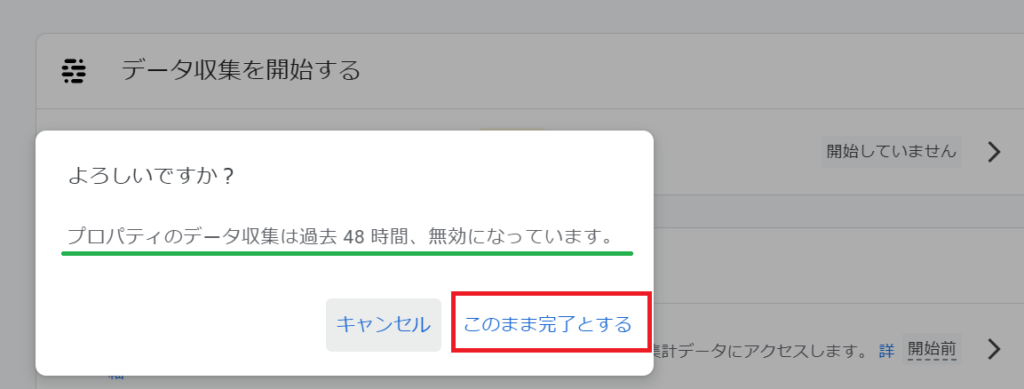 「このまま完了とする」をクリックし、まずは完了です。