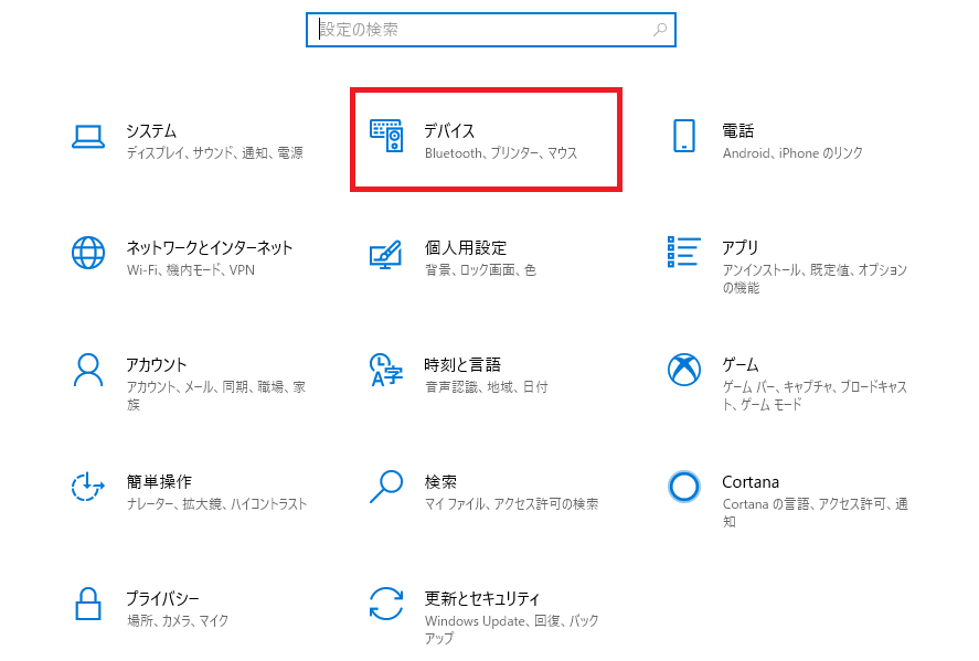 「デバイス」を開きます。
