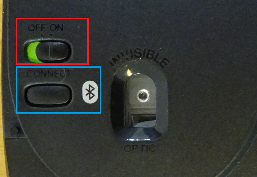 図の3と4のように、マウスの裏でスイッチをONし、CONNECTを押します。
