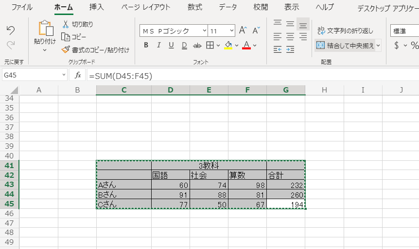 しかも、表の中にあるマージにも対応してくれます。