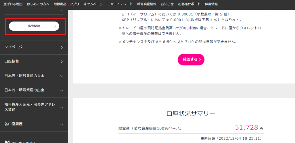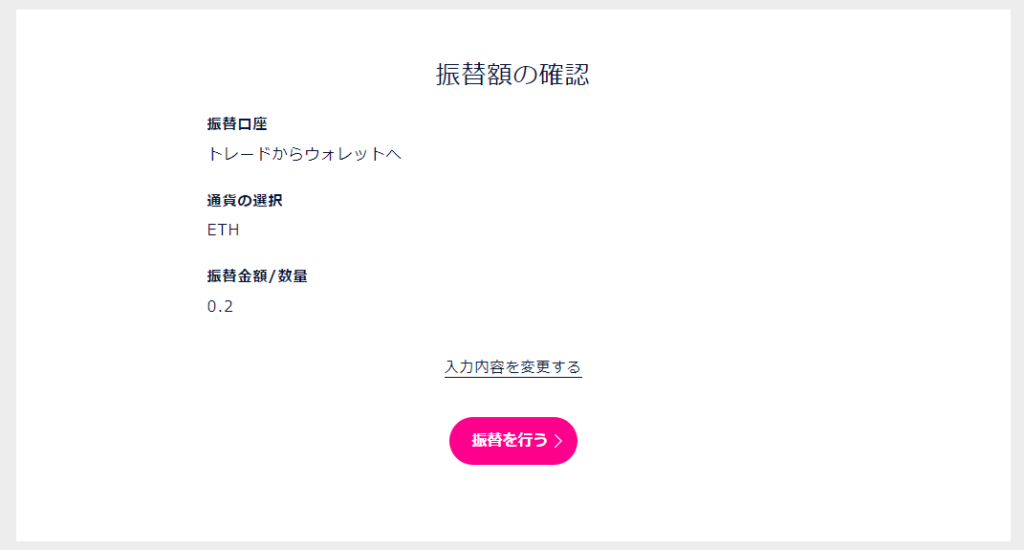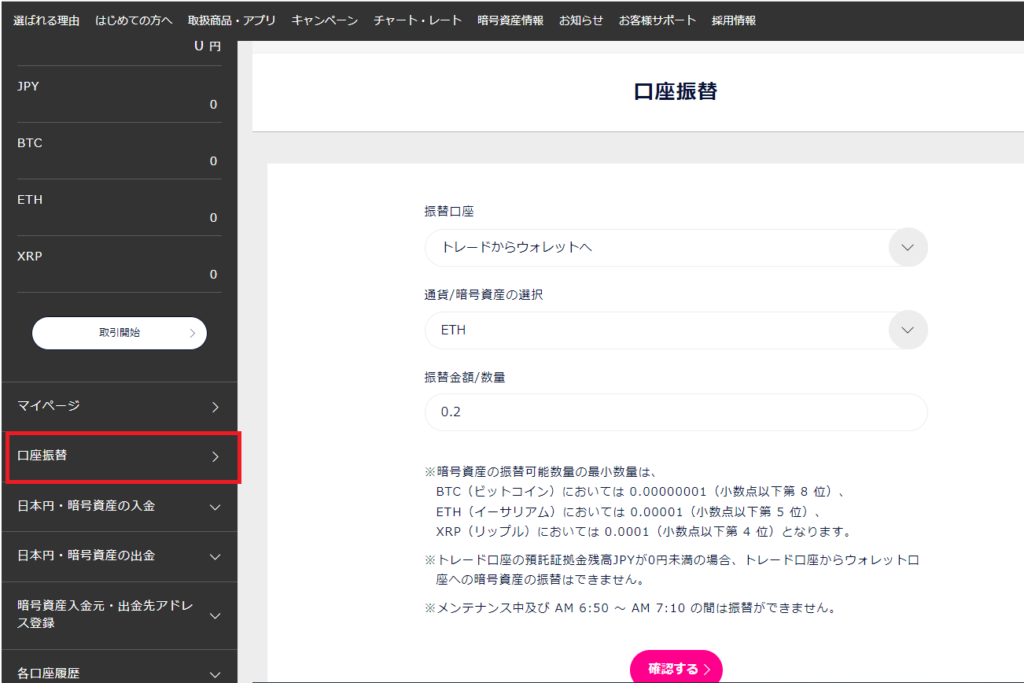 「現物」で購入したイーサリアムはそのままではMETAMASK(メタマスク)に送金することはできません。トレード口座からウォレット口座に振替を行う必要があります。